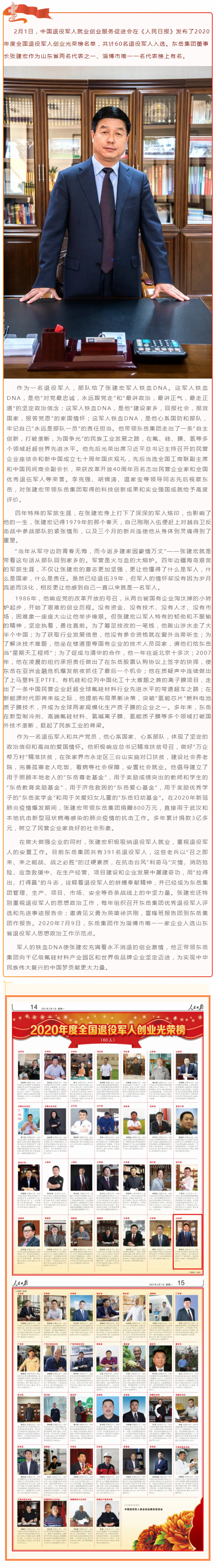 張建宏董事長榮登2020年度全國退役軍人創業光榮榜